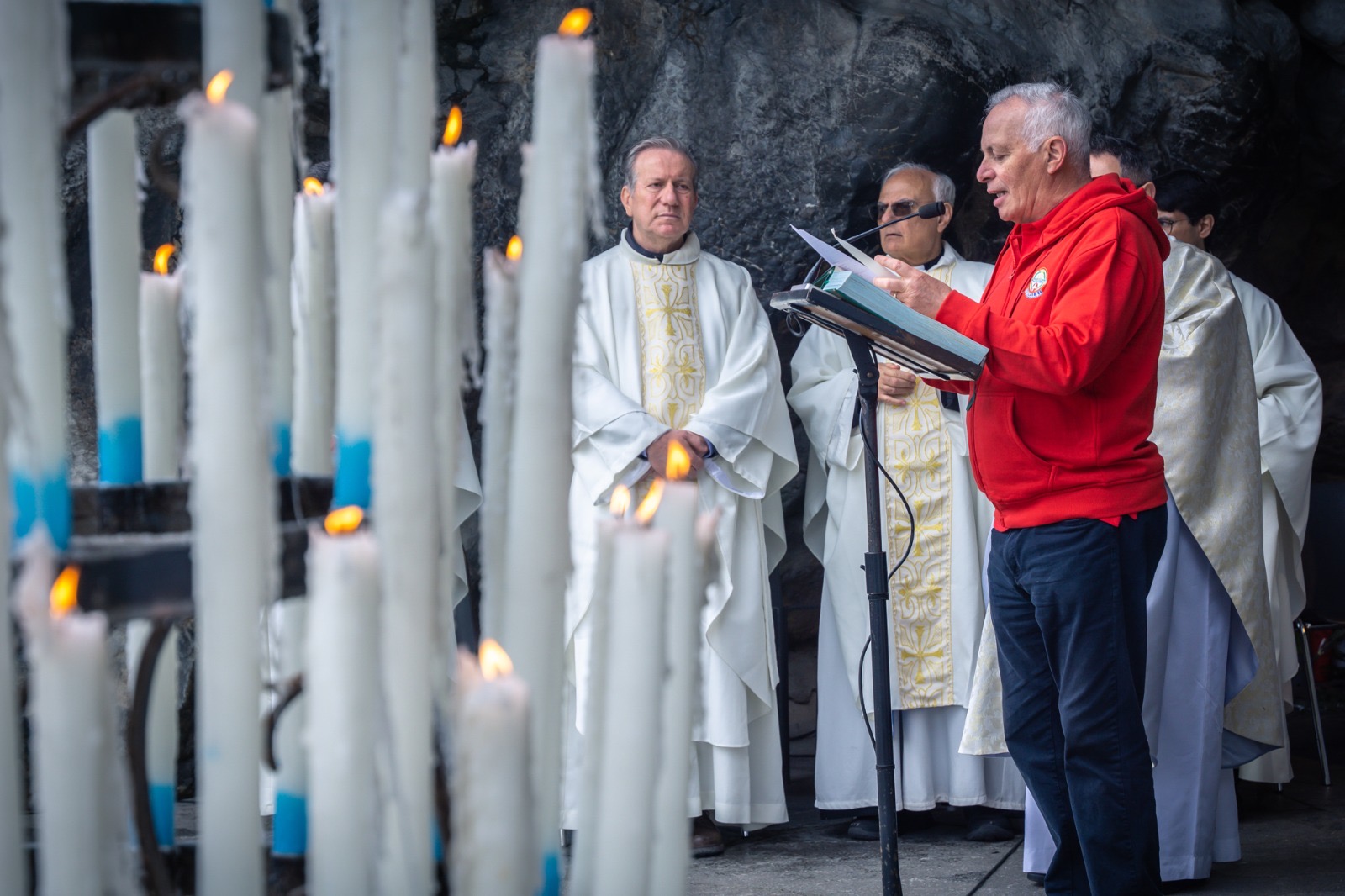 Accesa questa mattina alla Grotta di Lourdes la lampada che campeggia sulla Croce della Condivisione composta da tutti i Presidenti di Sezione che ha accompagnato la statua della Madonna di Lourdes durante la Peregrinatio Mariae.