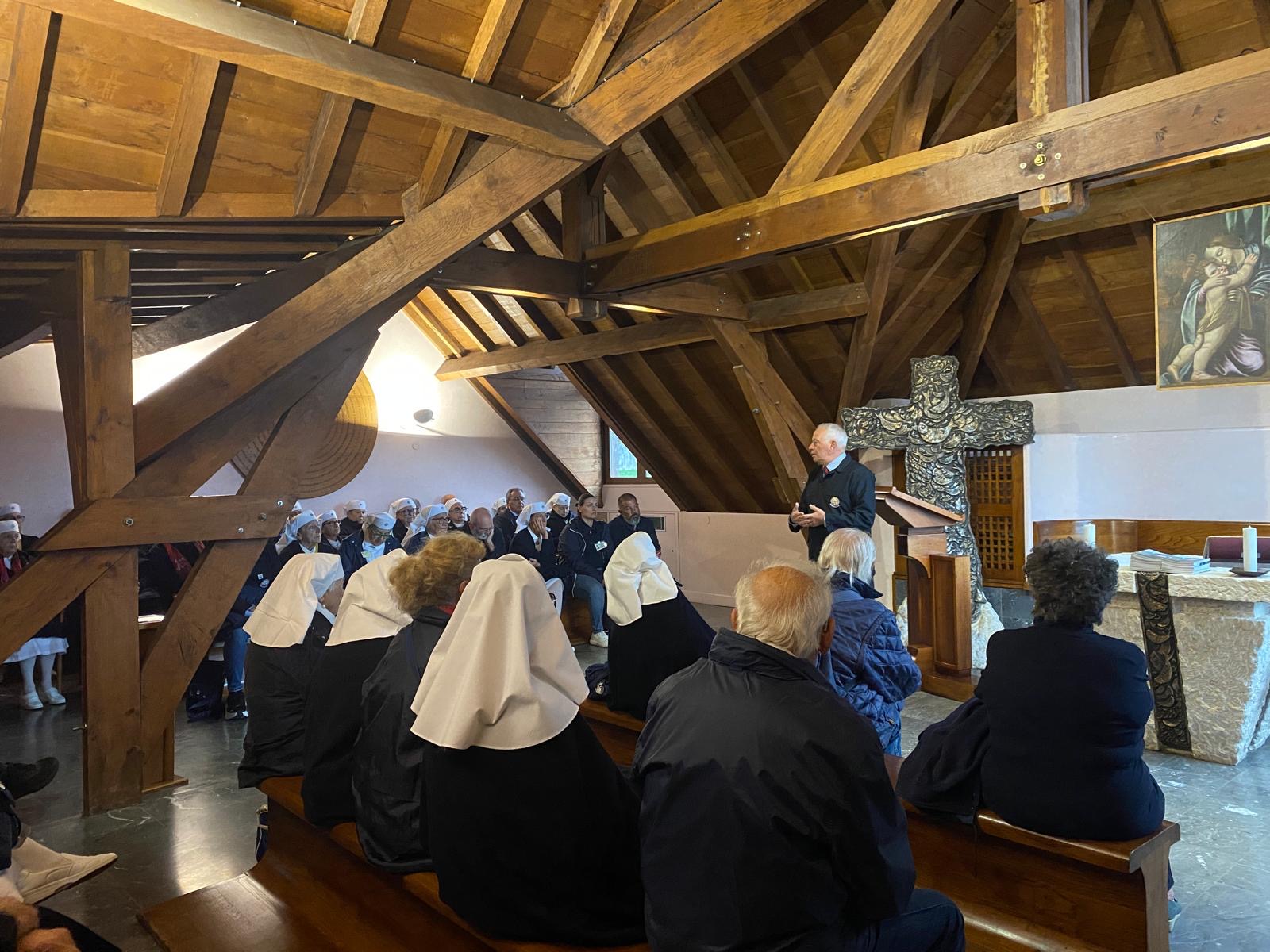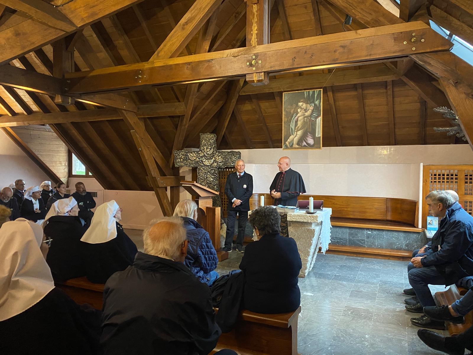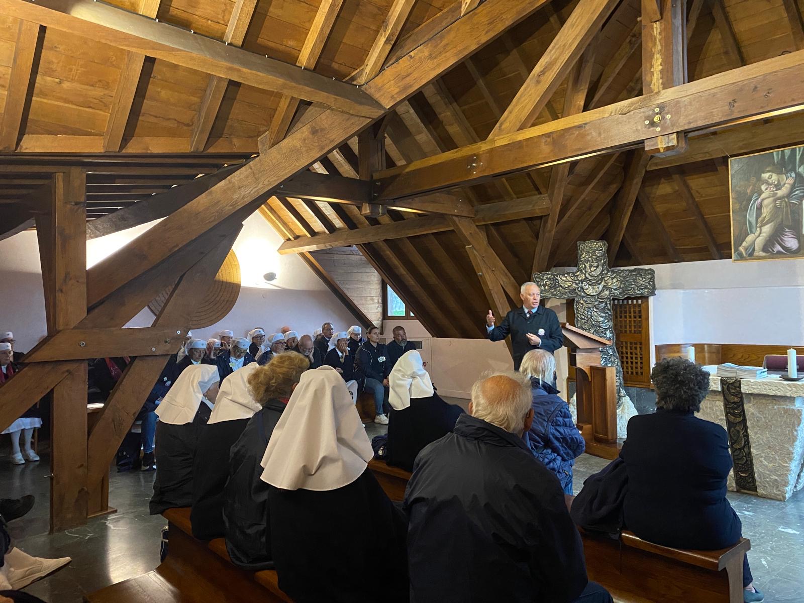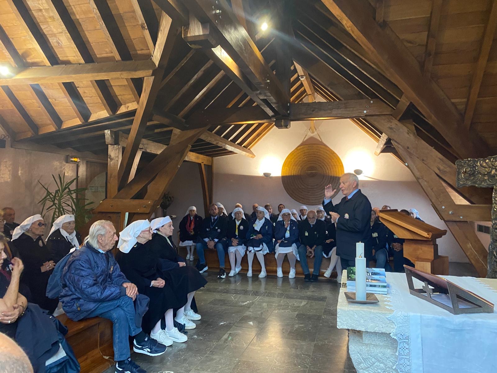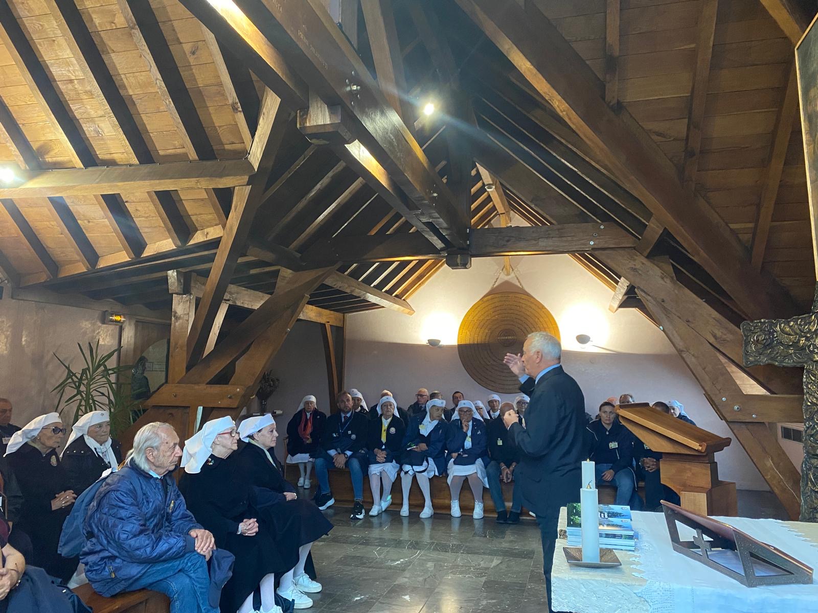 Nella Cappella del Salus Infirmorum, Mons. Rocco Pennacchio ha dato mandato agli Animatori di pellegrinaggio consegnando un sussidio composto da 11 schede. Ogni scheda approfondisce i momenti della vita di Bernadette, i luoghi in cui ha vissuto, le prole del Vangelo che ci ispirano, le parole di Bernadette e quello che dice a noi oggi. Ogni scheda termina infatti con alcune “note di attenzione” che ci invitano a riflettere. Lo strumento che ha lo scopo di accompagnare i pellegrini durante i Passi di Bernadette, è stato realizzato tenendo conto dell’esperienza e delle conoscenze acquisite negli anni, ma è in continuo divenire. Un prossimo aggiornamento e completamento verrà presentato al prossimo incontro Animatori che si terrà a febbraio ad Assisi.