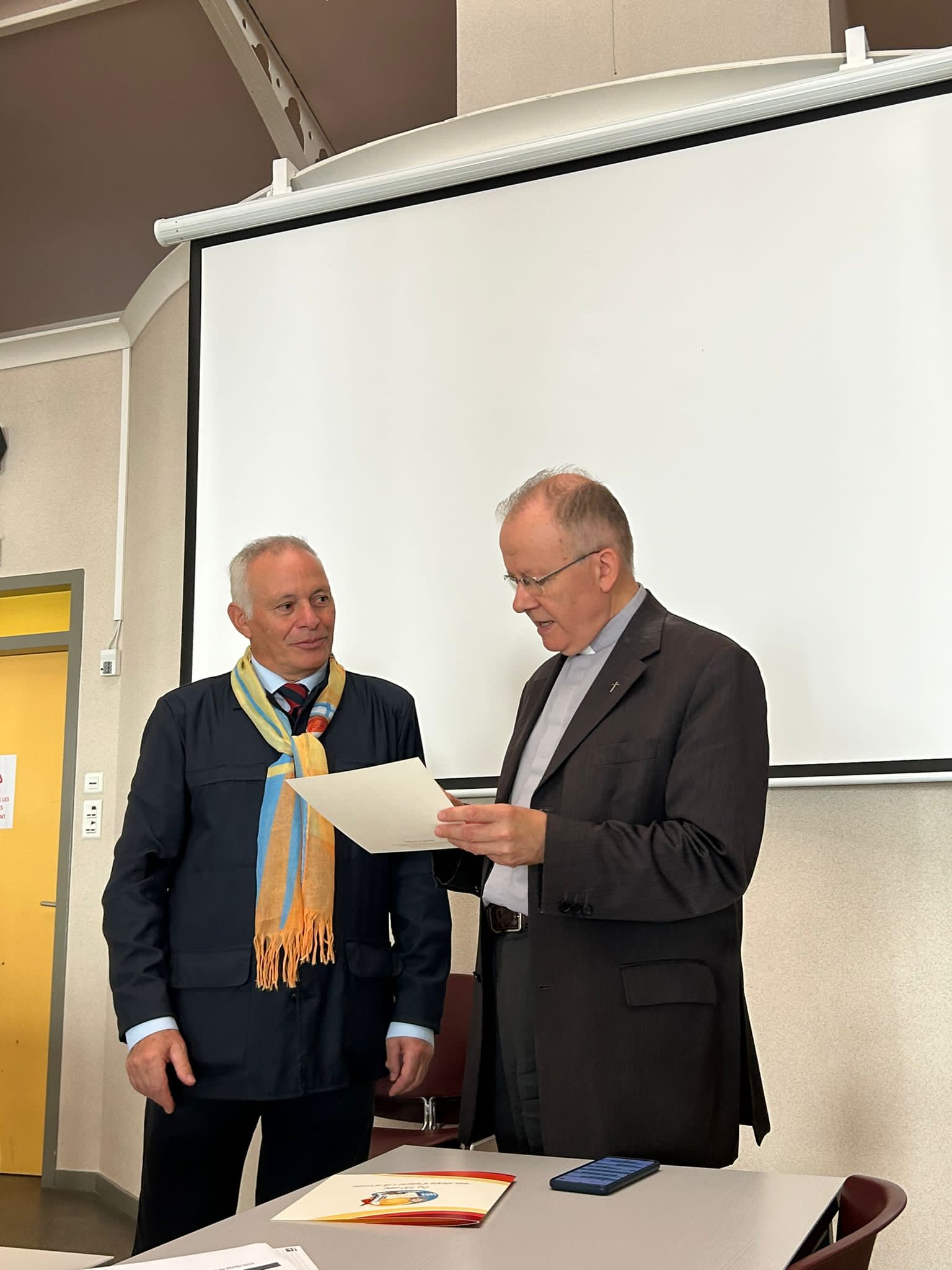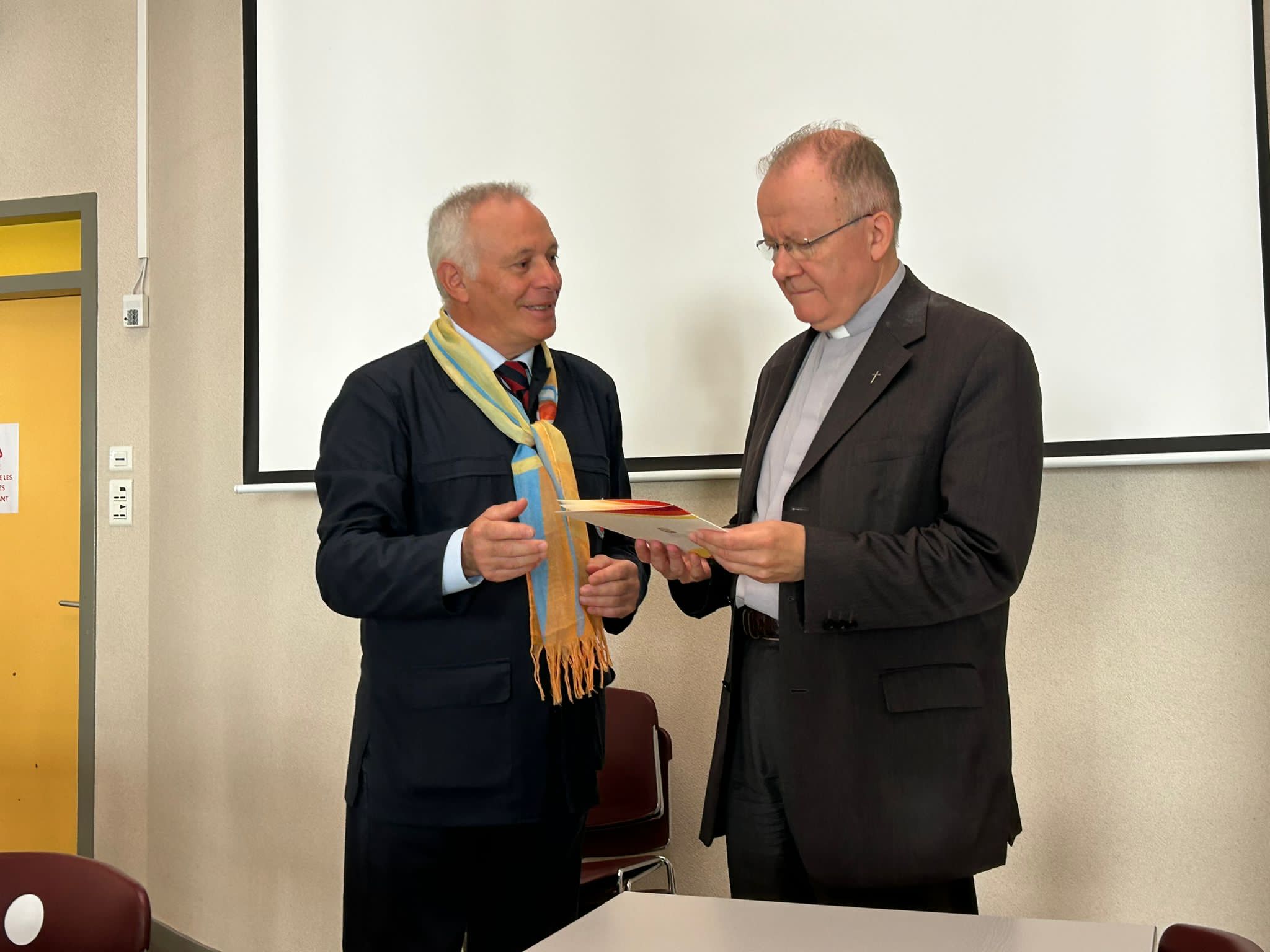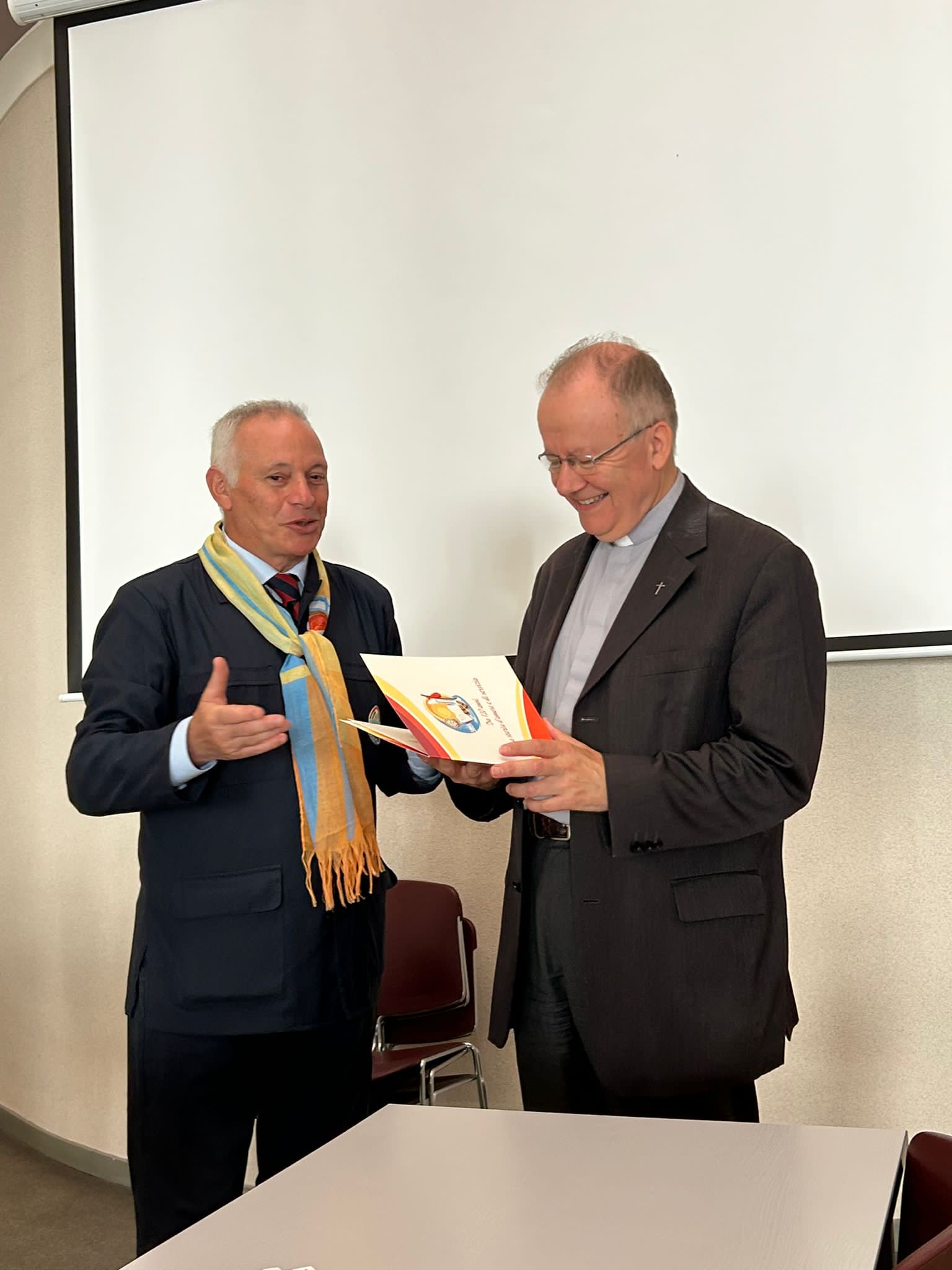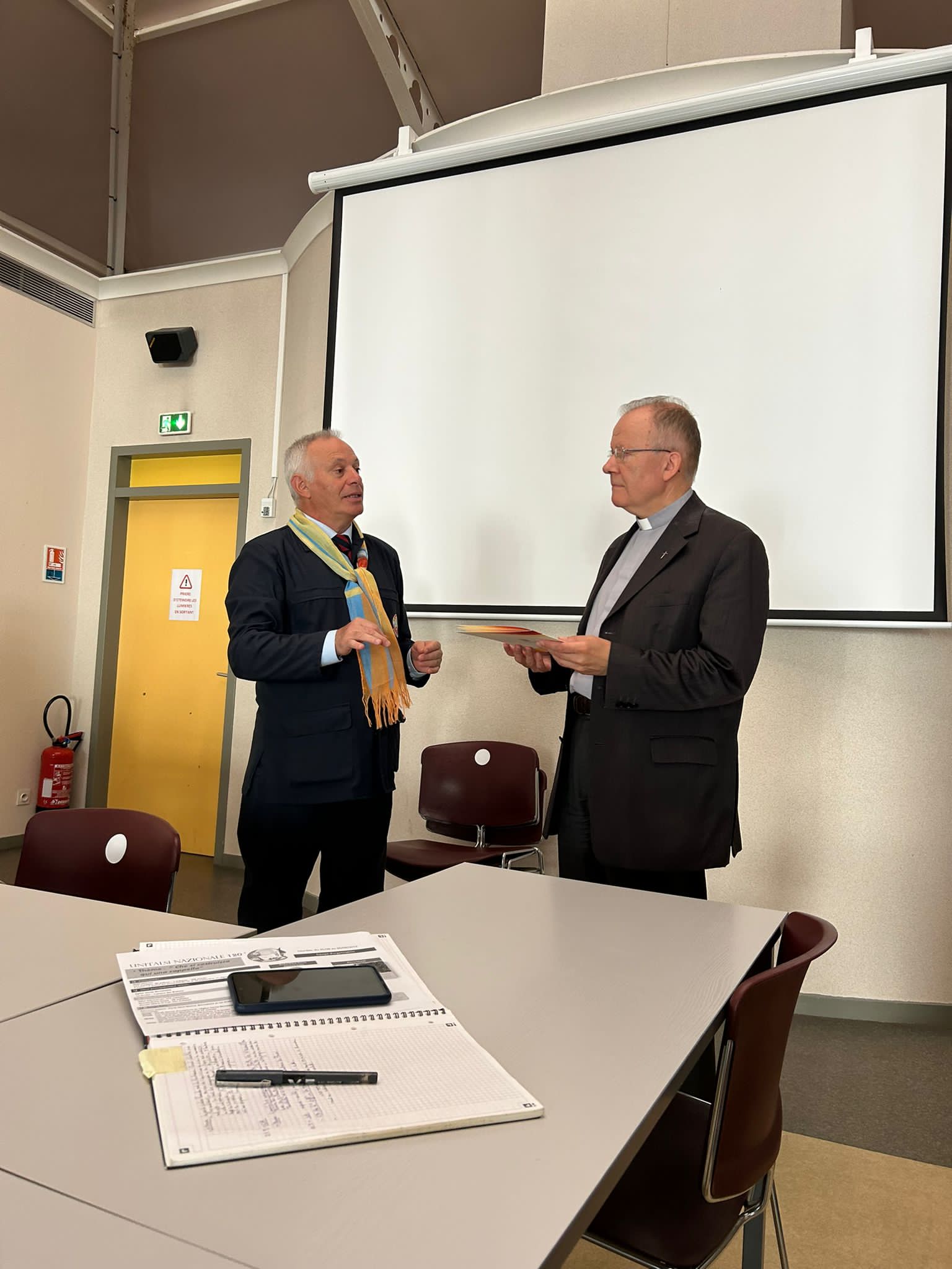 Fervono i preparativi per l’inizio ufficiale del pellegrinaggio nazionale, previsto per questa sera con la celebrazione eucaristica del pellegrinaggio nella Chiesa Santa Bernadette. Anche le Sezioni regionali che mancavano all’appello stanno arrivando a Lourdes. Tutti i volontari sono impegnati nell’organizzazione di questo importante appuntamento per tutta l’Associazione e tra le varie riunioni il Presidente Nazionale Rocco Palese ha incontrato il Rettore del Santuario francese Padre Michel Daubanes, donatogli una pergamena raffigurante il logo del nostro 120° anniversario di fondazione.