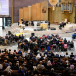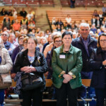 Nel pomeriggio nella Chiesa Santa Bernadette si è svolto la preghiera “Con Maria sorretti dalla fede”. Un momento voluto per riflettere e meditare con Maria che, per prima, ha percorso il cammino con Gesù sulla Via della Croce, per imparare da Lei come seguirLo. Sono stati ripercorsi i sette momenti o sette dolori della vita di Maria, che nell’iconografia popolare sono rappresentati da sette spade conficcate nel cuore della Madonna. Questo cammino è stato guidato attraverso alcune testimonianze di donne del nostro tempo, che hanno vissuto o vivono ancora nella propria carne i dolori e le sofferenze che ha provato Maria lungo il cammino della Croce. A queste storie drammatiche si è aggiunto anche la riflessione del Patriarca di Gerusalemme Cardinal Pierbattista Pizzaballa sulla drammatica situazione in Medio Oriente.