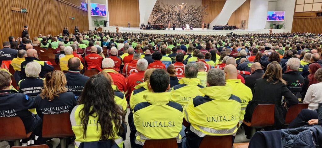 L’elenco dei ringraziamenti del Pontefice si snoda a partire dall’Arcivescovo Rino Fisichella, pro-prefetto del Dicastero per l’Evangelizzazione (nella galleria delle foto insieme ai nostri volontari in via della Conciliazione), per estendersi poi al Governo italiano – in Aula Paolo VI è presente anche il presidente del Consiglio dei ministri, Giorgia Meloni – al Comune di Roma e alla Regione Lazio. Il Papa ha espresso inoltre riconoscenza alle forze di sicurezza, alla Prefettura e alla Protezione Civile, alle associazioni di volontariato e all’Agenzia Giubileo 2000.
