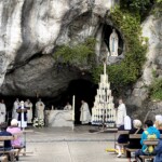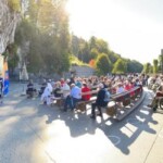 “Ringraziamo la Madonna per la presenza qui a Lourdes di nuovo dei pellegrini italiani. È una gioia risentire la nostra amata lingua in questo luogo dove la presenza degli italiani, seppur a distanza e con la preghiera, non è mai venuta a mancare. Siamo qui a ringraziare, in “questo luogo baciato dal Cielo”. Abbiamo tanto desiderato rivisitarlo in questa pandemia. Da questo Santuario siamo stati vicini a tutti con la preghiera. Oggi ci siamo ritrovati qui nella preghiera e proprio qui dove Santa Bernadette disse “sentivo di dover andare alla Grotta” chiediamo alla piccola Santa di Lourdes di sentire sempre questo richiamo a dover tornare alla Grotta, a fidarci di Maria e a credere che sempre il Signore si prenderà cura di noi. Chiediamo a Maria il sogno di tornare a casa dicendo con il cuore che “questo pellegrinaggio mi ha cambiato la vita”. (Padre Nicola Ventriglia, omelia Santa Messa alla Grotta di Lourdes, 9 settembre 2020)