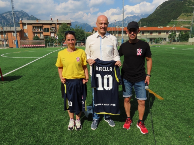 Dopodiché, si sono svolte le premiazioni del quadrangolare alla presenza del sindaco Angelo Isella, a cui è stata donata una divisa del Cristina Calcio. Gli atleti del Malgrate, infatti, hanno deciso di presentarsi al torneo con il nome di “Cristina Calcio” in memoria della moglie del loro ex allenatore. Un gesto bellissimo che ha fatto emozionare tutti i presenti.ù