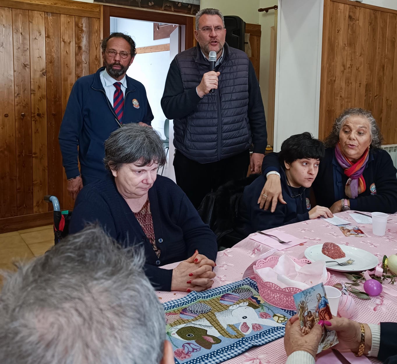 È stata una ovazione di allegria, giochi, canti, balli, lotteria per vincere l’uovo di Pasqua di kg 3,5 grigliata, compleanno 40 anni Lucia di Frosinone..un susseguirsi di incontenibile entusiasmo sia per gli amici speciali di Albano che per quelli di Frosinone accompagnati dal Presidente Francesco Santoro che sono stati felici di rivedere i loro amici speciali di Frosinone con i quali già avevano condiviso momenti a Lourdes e al mare.
