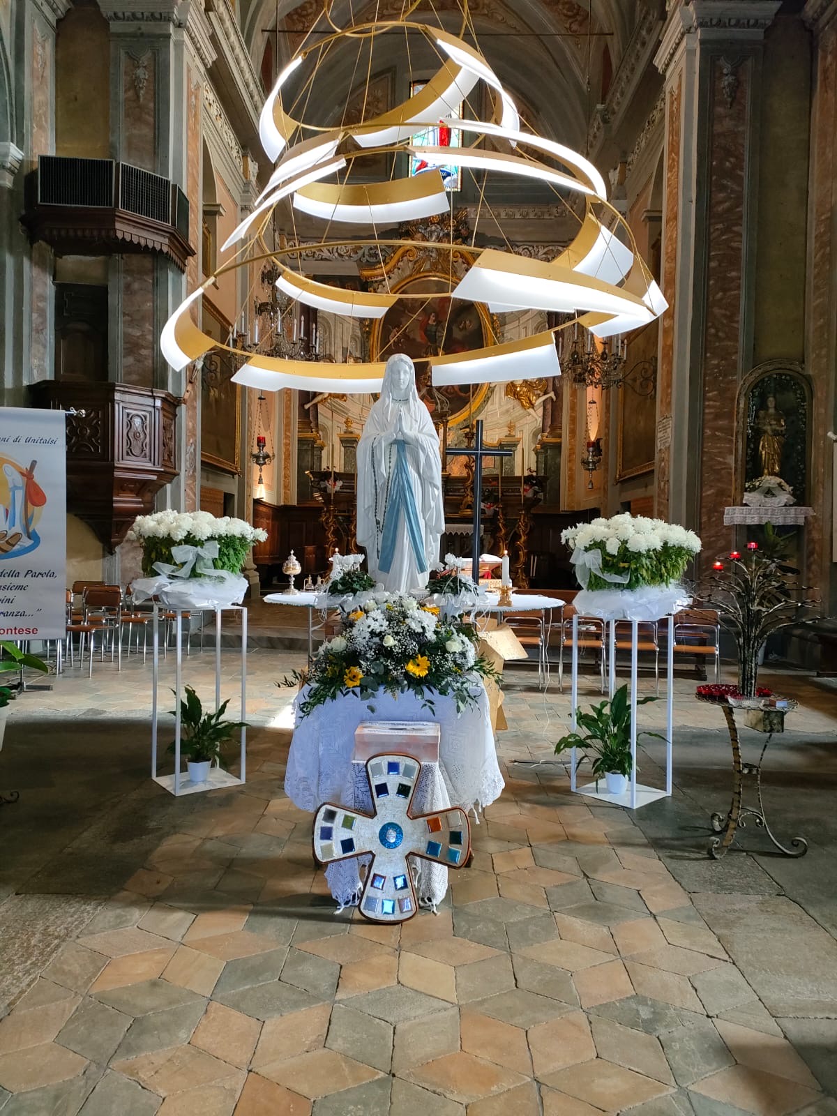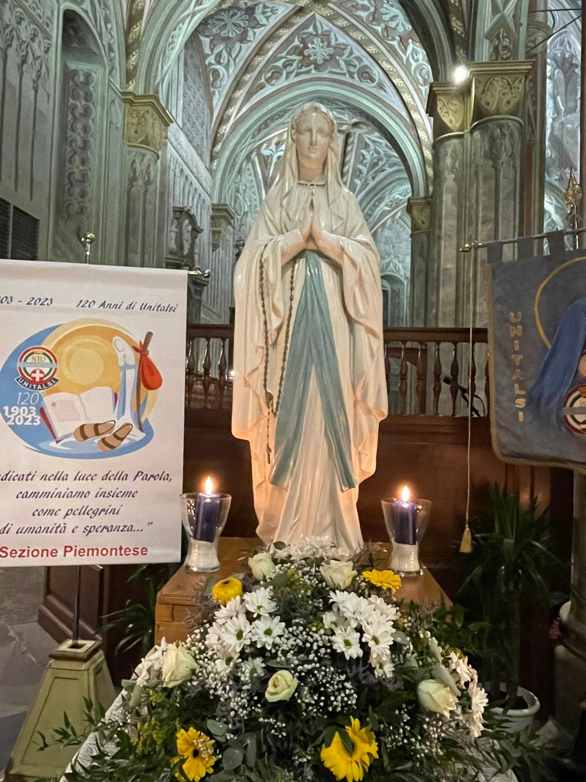 Il 23 mattina Santa Messa con la partecipazione di tanti ammalati; il Vescovo, Mons. Cristiano Bodo ha ringraziato l’Unitalsi per questo momento della visita della Madonnina, ed anche per il servizio dei tanti volontari. Tante le luci ,articolate in vario modo, per illuminare l’amore che si respirava intorno a Maria. Toccante ed indimenticabile l’accompagnamento, i canti e la preghiera silenziosa di Don Roberto nel commiato e nella consegna alla sottosezione di Asti. La nostra Madonnina da Lourdes porta alla luce i sentimenti veri di noi piemontesi.