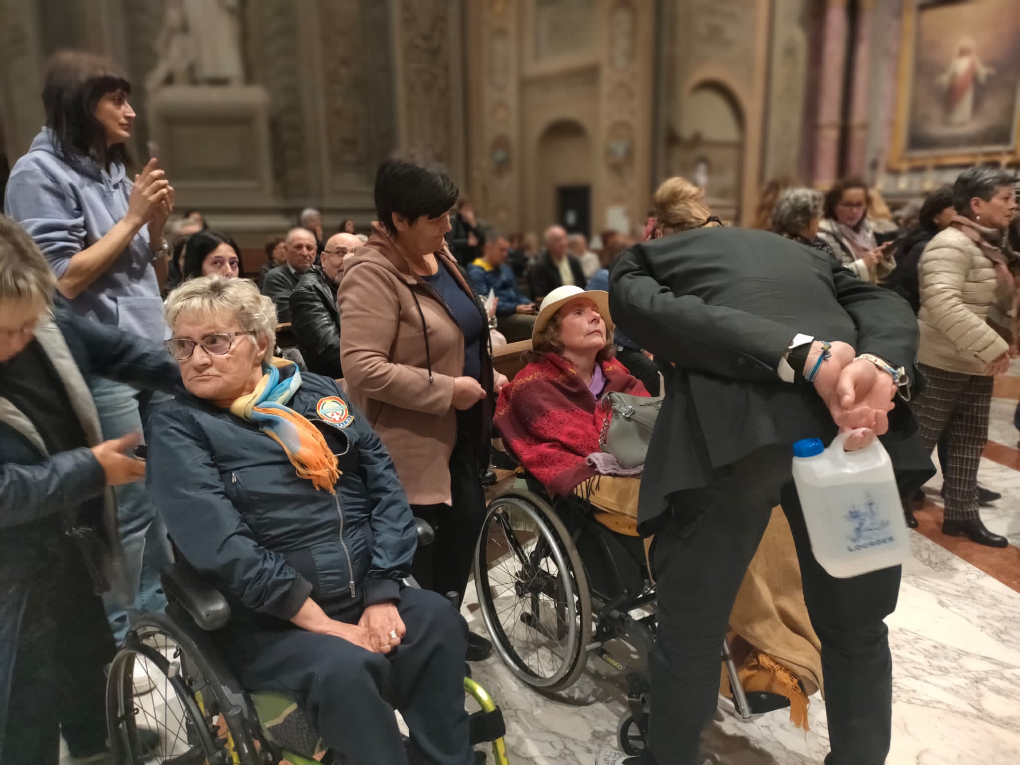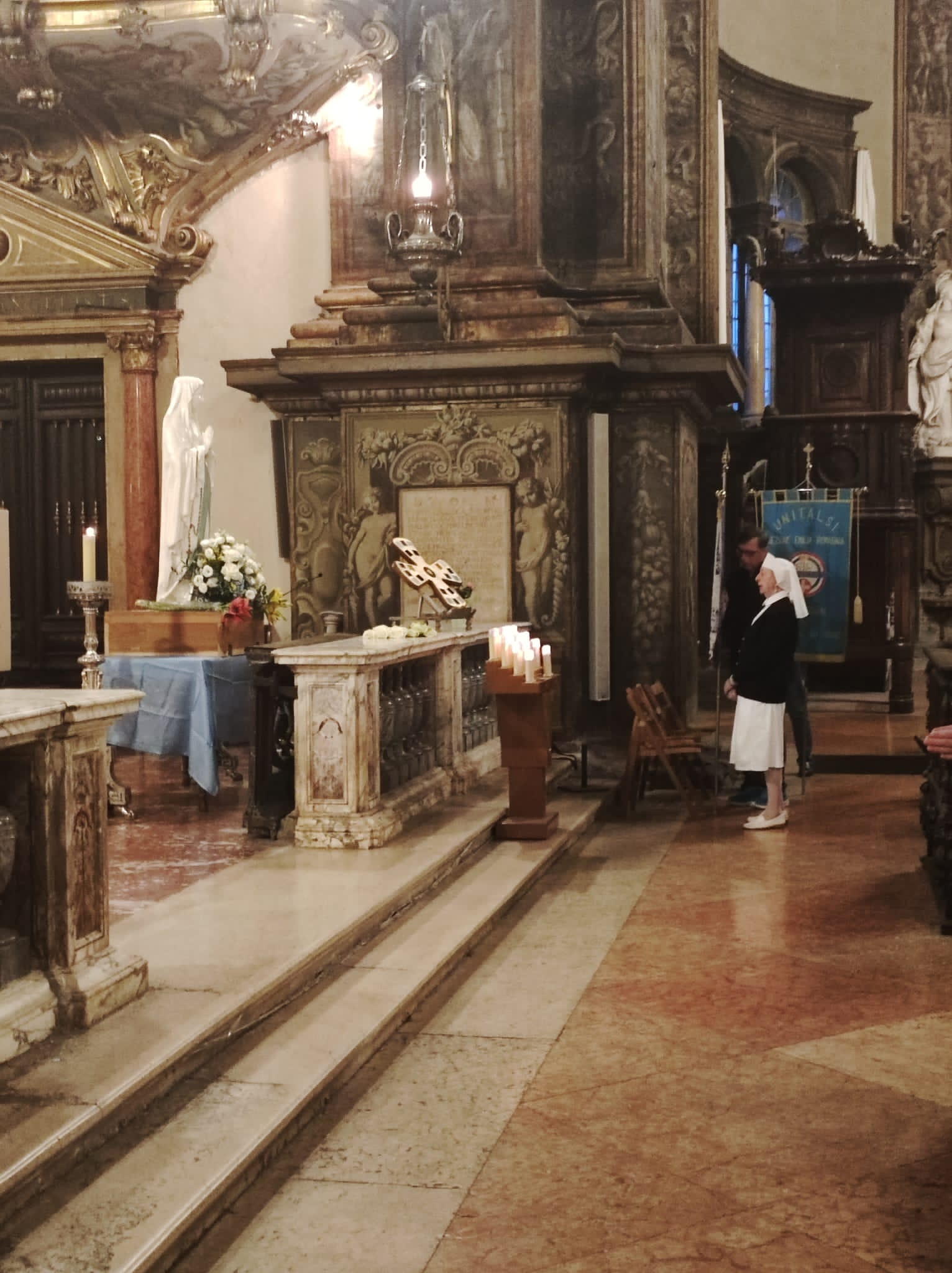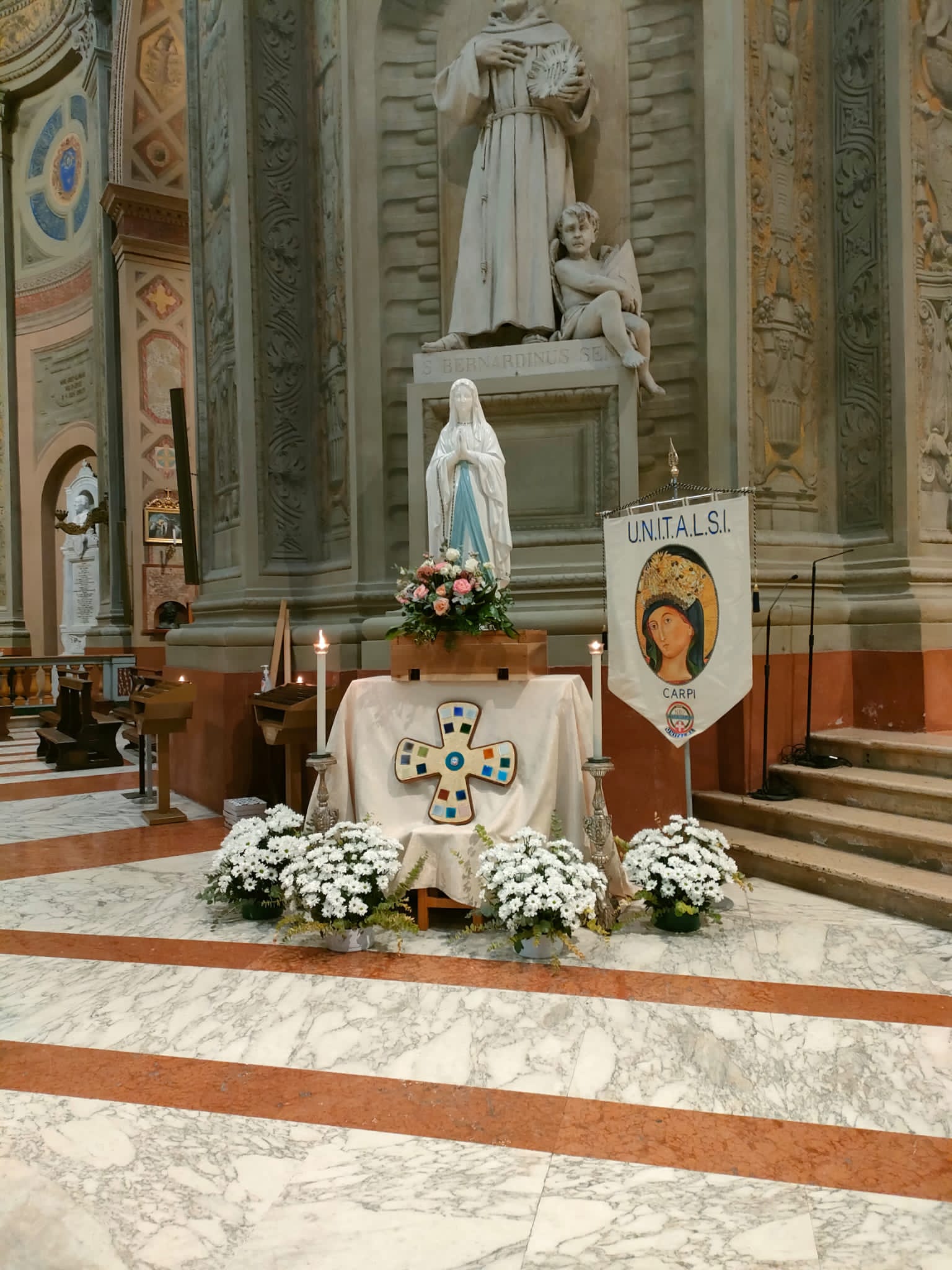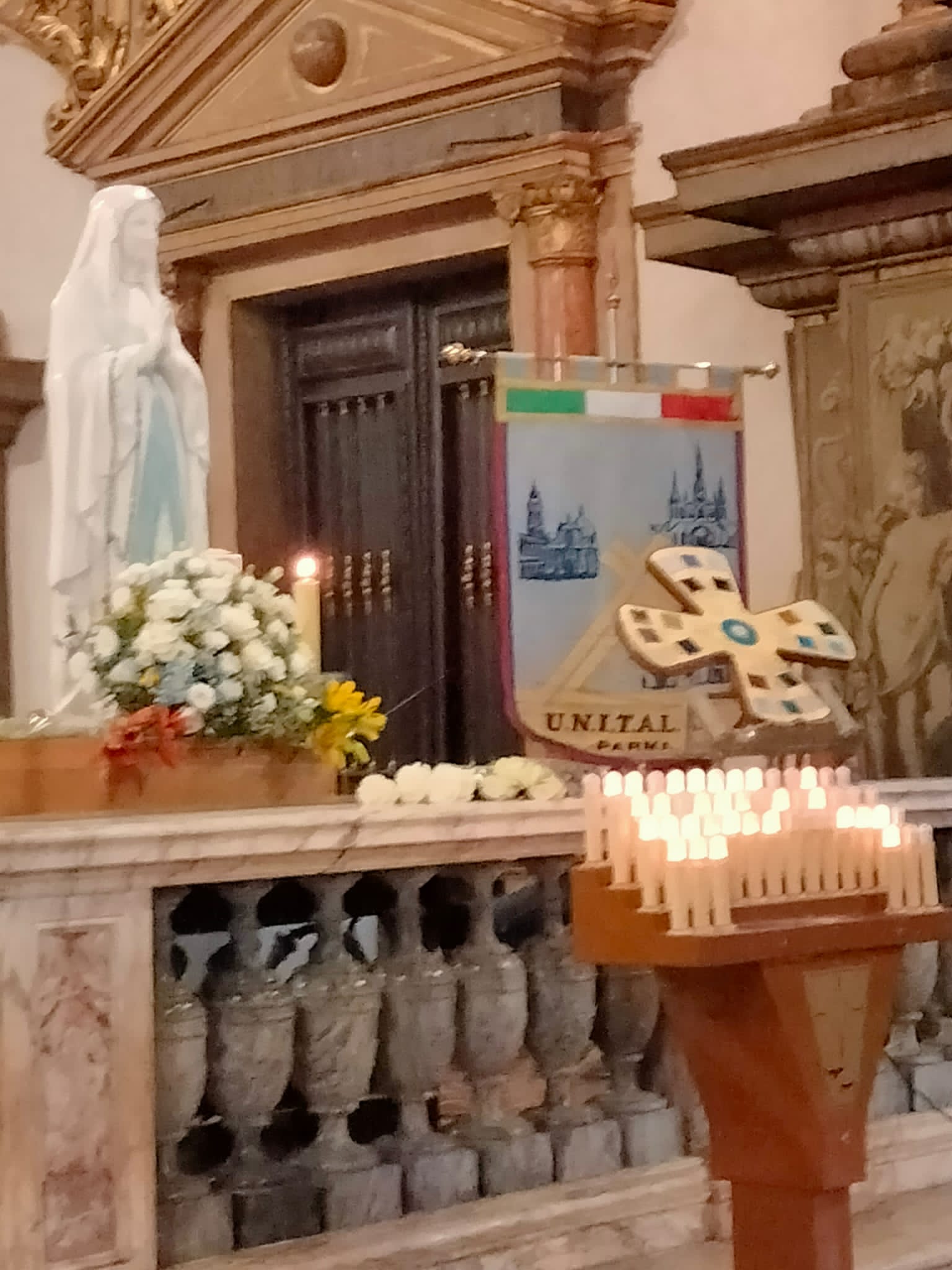 Proveniente dalle Marche, come prima località dell’Emilia e Romagna è toccato a Rimini fare gli onori di casa. A Bologna è giunta da Forlì, una delle località colpite dalla recente alluvione. Alle 7 in punto del 24 ha fatto il suo ingresso nella Cattedrale Metropolitana di San Pietro, ad accompagnarla nel luogo predisposto innanzi la «cattedra» ove siede l’Arcivescovo (assente per impegni sinodali) durante le funzioni religiose, il Rettore della Cattedrale monsignor Amilcare Zuffi, l’assistente spirituale dell’Unitalsi di Bologna don Luca Marmoni e la presidente di Bologna Anna Morena Mesini. Ai Sabatini il compito di sorreggerla, così come avviene solitamente con la Madonna di San Luca, e di collocarla con cura. Alle 7,30 don Amilcare ha celebrato la prima Messa della giornata. Poca la gente presente a quell’ora, ciò nonostante al termine molti si sono soffermati a fare foto e soprattutto a pregare, affidando alla «Nostra Signora di Lourdes». tutte le preoccupazioni per i loro cari, per gli ammalati e a quanti stanno soffrendo a causa delle guerre e delle atrocità che affliggono l’umanità.