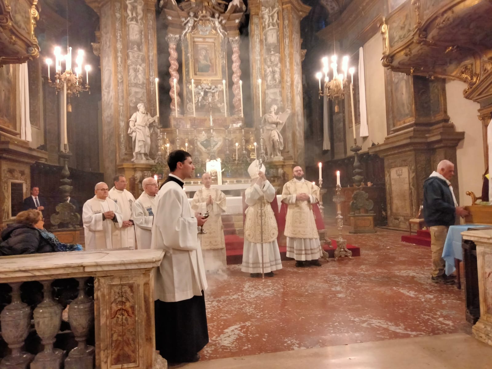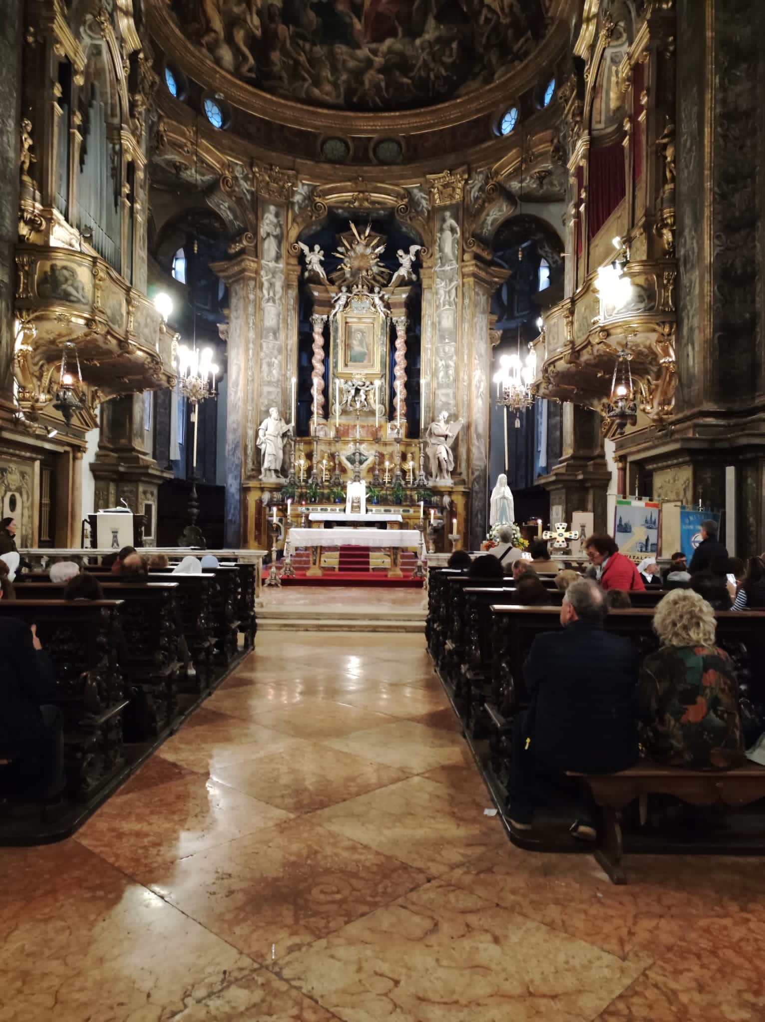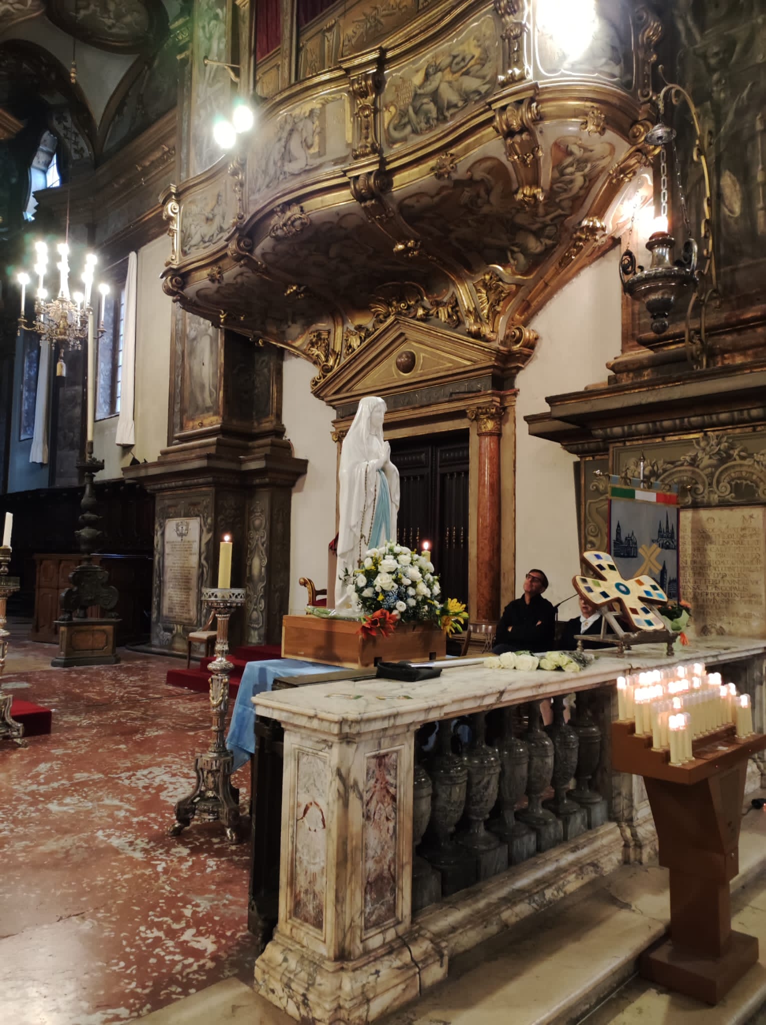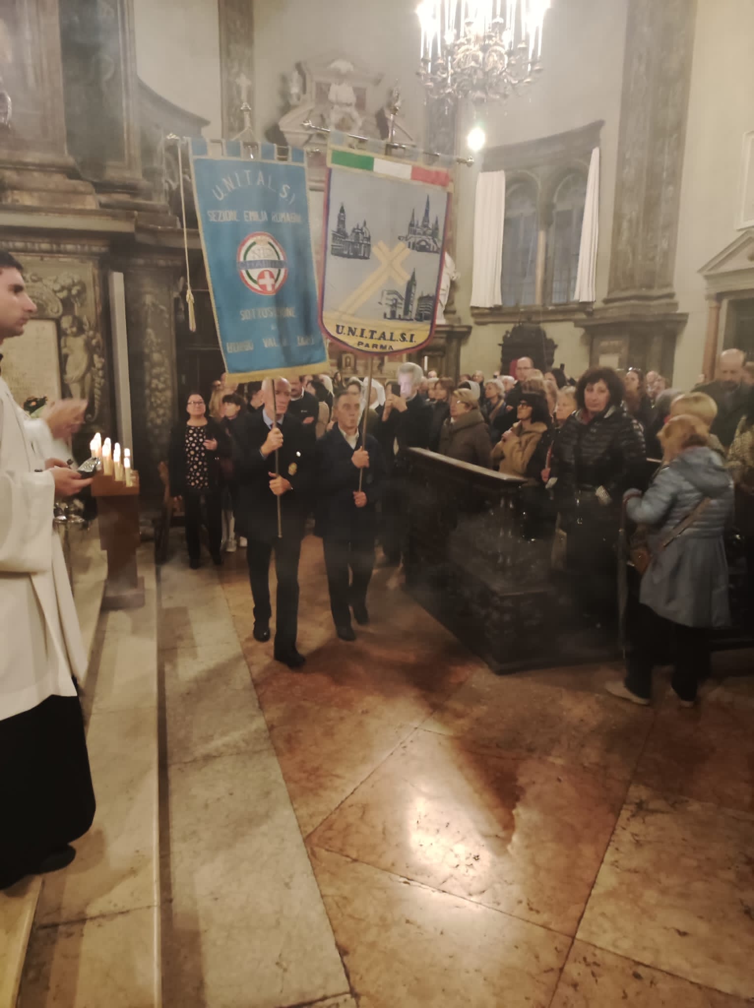 Proveniente dalle Marche, come prima località dell’Emilia e Romagna è toccato a Rimini fare gli onori di casa. A Bologna è giunta da Forlì, una delle località colpite dalla recente alluvione. Alle 7 in punto del 24 ha fatto il suo ingresso nella Cattedrale Metropolitana di San Pietro, ad accompagnarla nel luogo predisposto innanzi la «cattedra» ove siede l’Arcivescovo (assente per impegni sinodali) durante le funzioni religiose, il Rettore della Cattedrale monsignor Amilcare Zuffi, l’assistente spirituale dell’Unitalsi di Bologna don Luca Marmoni e la presidente di Bologna Anna Morena Mesini. Ai Sabatini il compito di sorreggerla, così come avviene solitamente con la Madonna di San Luca, e di collocarla con cura. Alle 7,30 don Amilcare ha celebrato la prima Messa della giornata. Poca la gente presente a quell’ora, ciò nonostante al termine molti si sono soffermati a fare foto e soprattutto a pregare, affidando alla «Nostra Signora di Lourdes». tutte le preoccupazioni per i loro cari, per gli ammalati e a quanti stanno soffrendo a causa delle guerre e delle atrocità che affliggono l’umanità.