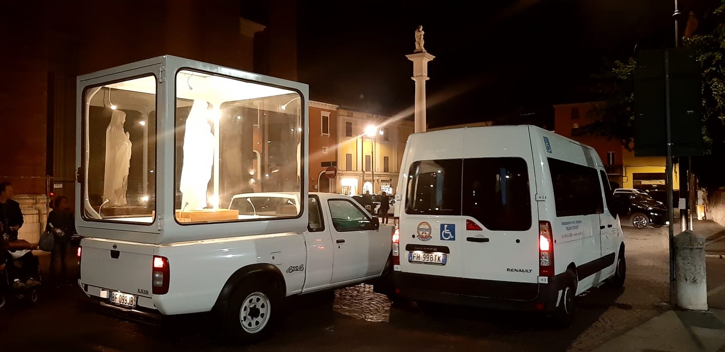 Dalla Campana, l’effige è passata alle Marche e in questi giorni è giunta in Emilia Romagna. Da Faenza a Forlì, poi Rimini fino a Bologna dove è mostrata nella Cattedrale di San Pietro, per vivere le celebrazioni liturgiche previste dal programma della Diocesi.