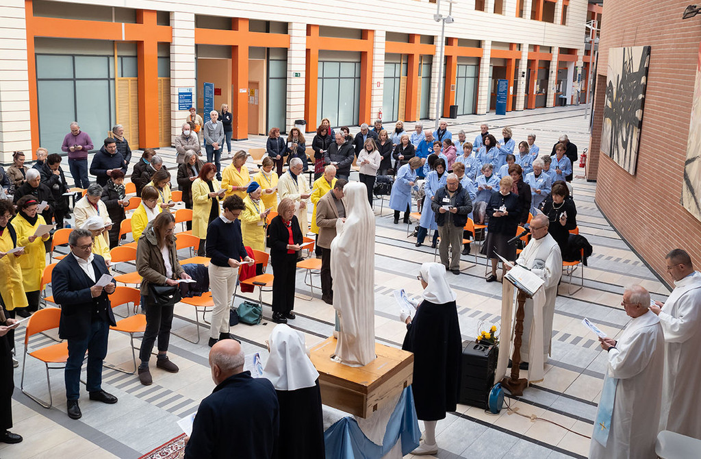 Davanti alla statua della Vergine – accolta dal vescovo Marco Prastaro, dal direttore generale dell’Asl AT Francesco Arena e dal cappellano dell’ospedale, don Giancarlo Iraldi – si sono raccolti in preghiera medici, infermieri, volontari ospedalieri, personale amministrativo della Asl, parenti dei ricoverati e tanti astigiani.