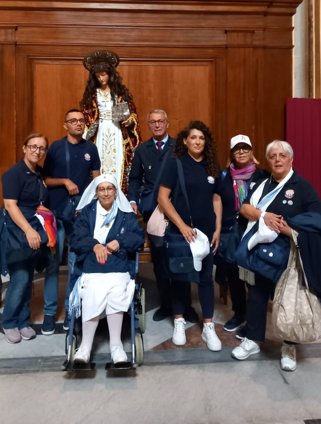 Con la comunità parrocchiale, anche il Gruppo Unitalsi di Irsina, della sottosezione Unitalsi di Matera, ha preso parte all’Udienza del Papa e alla successiva Benedizione del Simulacro di Sant’Eufemia, Patrona della città. Un momento di alto valore religioso, comunitario ed identitario, per tutta la comunità Irsinese, su cui si è estesa la Benedizione del Santo Padre. Una statua, quella di Sant’Eufemia, che – oltre al valore simbolico e di devozione popolare – è anche di alto pregio artistico, tanto da essere ritenuta attribuibile alla Scuola del Mantegna.