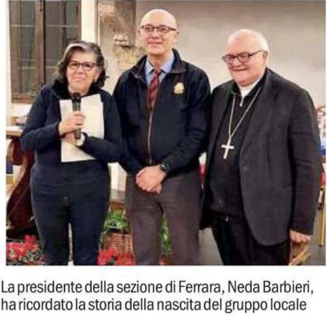Furono infatti i parrocchiani di Pontelagoscuro, fra cui vi erano diversi marchigiani, che partiti per un viaggio in Francia, deviarono verso Lourdes, possibilità offerta dal direttore della fabbrica a chi si era distinto per impegno operativo e tecnico. Al ritorno diedero vita alla sezione Unitalsi della Montedison, ancora attiva. «In questa occasione – ha proseguito la presidente – ricorderò tutti i volontari scomparsi attraverso Gianni Fiocchi, morto recentemente in modo improvviso. Scrisse “In viaggio verso Lourdes”, un diario significativo che abbiamo deciso insieme al Serra Club di presentare oggi». «Sono all Unitalsi da 30 anni – ha poi concluso – e mi piace condividere il mio servizio con altri 36.931 volontari in Italia e 211 a Ferrara che solo nel 2025 hanno collaborato a 1.427 pellegrinaggi Emilia-Romagna e ai molteplici progetti che promuoviamo durante tutto l anno come le feste e l amicizia, i compleanni, il carnevale, le vacanze estive e i momenti di formazione». Parole di riconoscenza sono state poi espresse dall’Aarcivescovo e dal vice presidente Gardini che hanno augurato altri 90 anni di impegno e di assistenza.