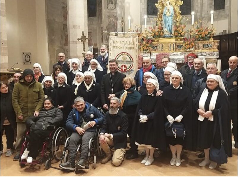 Il vescovo Luciano ha ricordato che l’Unitalsi è chiamata a testimoniare «la santità battesimale nella cura e nell’accompagnamento delle persone fragili e ammalate» e che il tema spirituale del nuovo anno associativo sarà la meditazione sull’Ave Maria, “cammino interiore sulle orme della Vergine”. Con la chiamata dei soci – prima gli ausiliari, poi gli effettivi – la chiesa ha risuonato del fermo “Eccomi!” pronunciato da ciascun partecipante, segno di una rinnovata disponibilità al servizio. Sono stati ricordati anche coloro che, pur impossibilitati a essere presenti, condividono il cammino associativo nella comunione dello Spirito. Un momento molto significativo è stata la benedizione delle divise e dei distintivi, simboli del servizio unitalsiano, affinché chi li indossa sia “servo della gioia” e cercatore del bene altrui. Durante l’offertorio sono stati presentati i quattro segni propri della Giornata dell’adesione: il pane, offerto come segno delle fragilità umane che il Signore trasforma in vita nuova; il vino, simbolo della sete di verità che Cristo colma nei cuori; la divisa Unitalsi, segno del servizio dei volontari; i fiori per Maria, affidati all’intercessione dell’Immacolata. Alla celebrazione hanno preso parte i soci della sottosezione di Gubbio e del gruppo di Umbertide, riuniti per vivere insieme il rinnovo dell’adesione. Il presidente della sottosezione eugubina è Giacomo Valentini e gli aderenti sono Lucilla Adriani, Antonietta Costi, Maria Luchetti, Giuseppe Mariucci, Antonietta Mischianti, Fausto Nuti, Nerina Pancieri, Italo Prosciutti, Giovanni Ranalli, Fiorella Tasso. Il responsabile del gruppo umbertidese è Giovanni Marcucci e gli aderenti sono Olga Barafani, Leonardo Calzetti, Francesca Caprini, Giuseppe Cassandra, Roberta Cecconata, Maria Teresa Cinquilli, Ivana Gillosi, Fausto Grassini, Antonella Maccarelli, Rita Mommi, Massimo Moretti, Mauro Papini, Patrizia Pauselli, Roberta Tega, Emanuele Timi, Antonietta Ventanni, Milena Villarini.