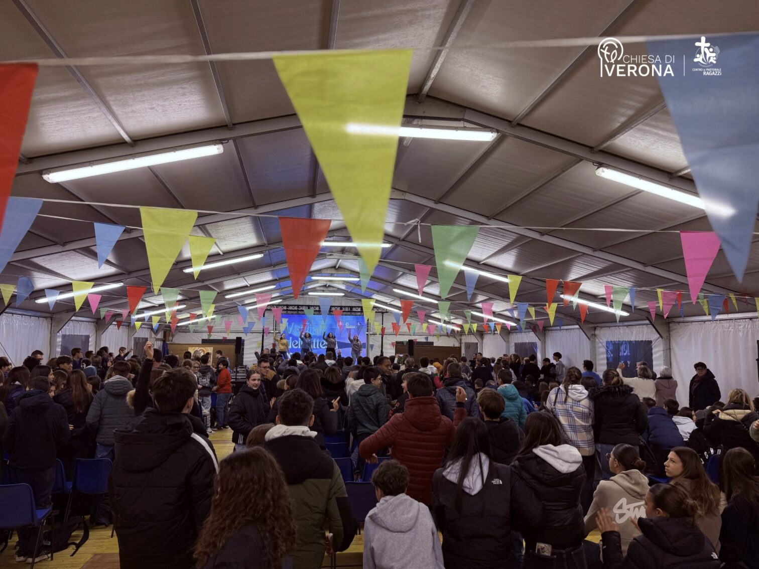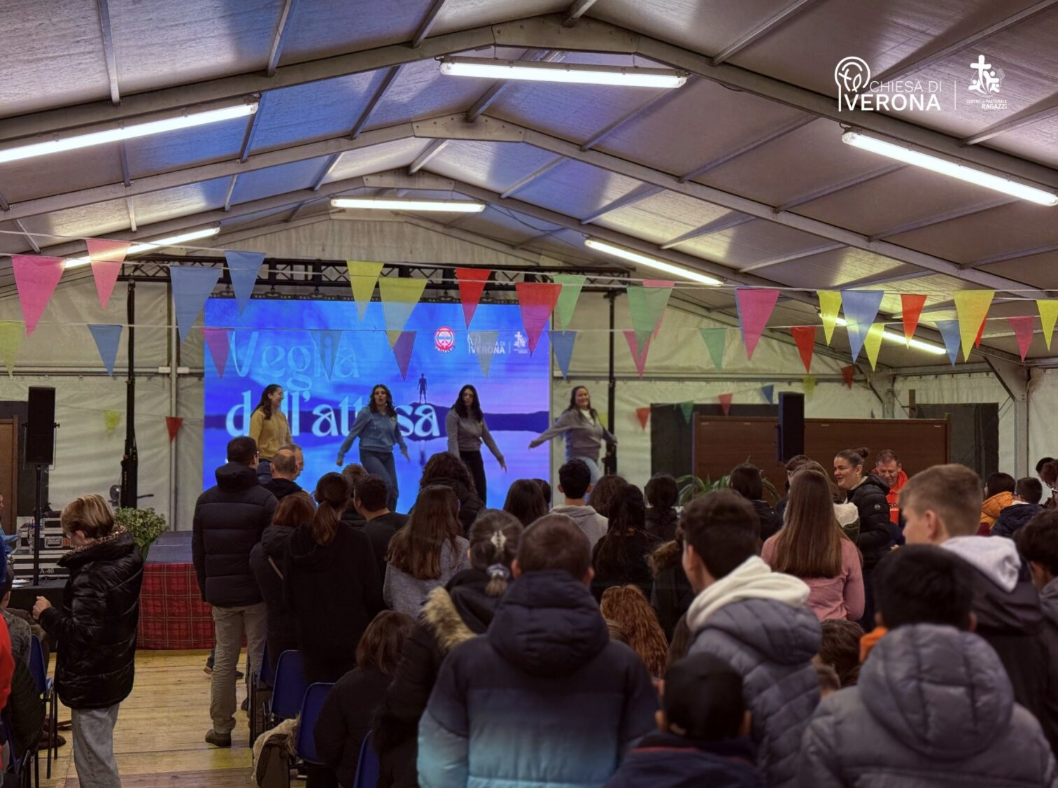 Un gioioso gruppo di circa 400 ragazze e ragazzi di terza media si è riunito nella serata dello scorso sabato 22 per trascorrere con entusiasta partecipazione la “Veglia dell’Attesa” organizzata dal Centro di pastorale ragazzi, in preparazione al periodo di Avvento. Dopo l’accoglienza, tra balli e divertimento, l’associazione “La Grande Sfida” ha coinvolto i giovani partecipanti in un momento carico di significato con la presentazione delle attività da parte del presidente Roberto Nicolis e le voci di alcuni ragazzi che hanno dato la propria testimonianza in merito alla tematica della felicità e del limite, dopo essersi esibiti in una coreografia sulla canzone “Abitare il limite”.