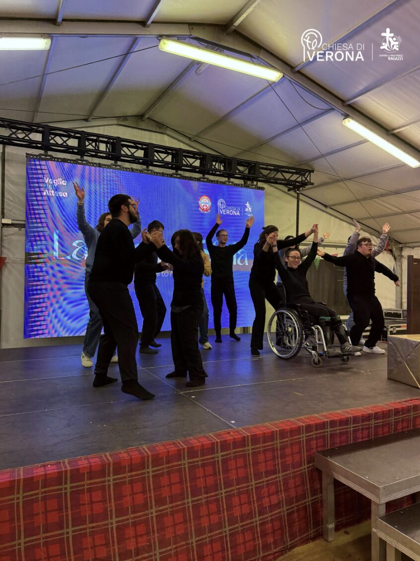 «Per me la danza è vita. Non mi sento giudicato e nessuno balla male o bene. Si parla di armonia»: così racconta Giacomo de “La Grande Sfida”, trasmettendo la sensazione di benessere provata nei momenti di ballo. «Abitare il limite – ha aggiunto – secondo me significa affrontare le mie insicurezze. Ama il prossimo tuo come te stesso, dunque, per aiutare gli altri devo prima amare me». Anche un’altra giovane, Irene, ha sottolineato come per lei «la felicità sia avere dei fratelli e delle sorelle fantastiche, che si ritrovano anche nel gruppo di danza “più bello del mondo”». Prima di un momento di preghiera con la lettura del Vangelo accompagnato dai canti della CPRband e dalla provocazione di don Matteo Selmo, Rebecca ha portato la sua testimonianza come appartenente al “Progetto dei Piccoli” di Unitalsi.