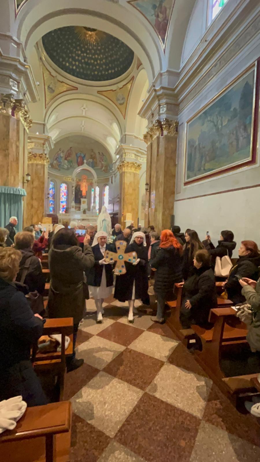 Grande commozione per la visita dell’Effige della Madonna di Lourdes all’interno del carcere di Pescara. La statua è stata portata all’ingresso da quattro detenuti che si sono poi alternati ad altri quattro che hanno poi fatto l’ingresso in processione nella cappella del carcere, insieme al cappellano don Luca Anelli, a quattro seminaristi, a suor Livia Ciaramella, e a quattro volontari dell’ Unitalsi – sottosezione di Pescara tra cui la Presidente Rita Circeo e la Consigliera di Sezione Federica Bucci. È stata celebrata l’Eucarestia, i detenuti hanno potuto lasciare le loro intenzioni di preghiera che, con tutte le altre che verranno raccolte, saranno portate a Lourdes e bruciate al Flambeaux. Un emozionante saluto alla Vergine, con lo sventolio dei fazzoletti bianchi, ha accompagnato all’uscita la Statua che ha poi effettuato una “visita” presso il padiglione di massima sicurezza. Gli ospiti hanno così potuto avere pochi, ma intensi, minuti di preghiera personale con la Vergine e lasciare anche loro le intenzioni di preghiera preparate.