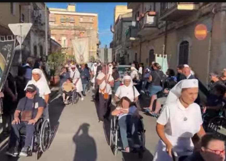 Una Celebrazione partecipata da tanti pellegrini, nella condivisione della preghiera e della solidarietà, iniziata con la Processione che dalla Casa del Pianto ha accompagnato il Reliquiario delle Lacrime fino alla Basilica.