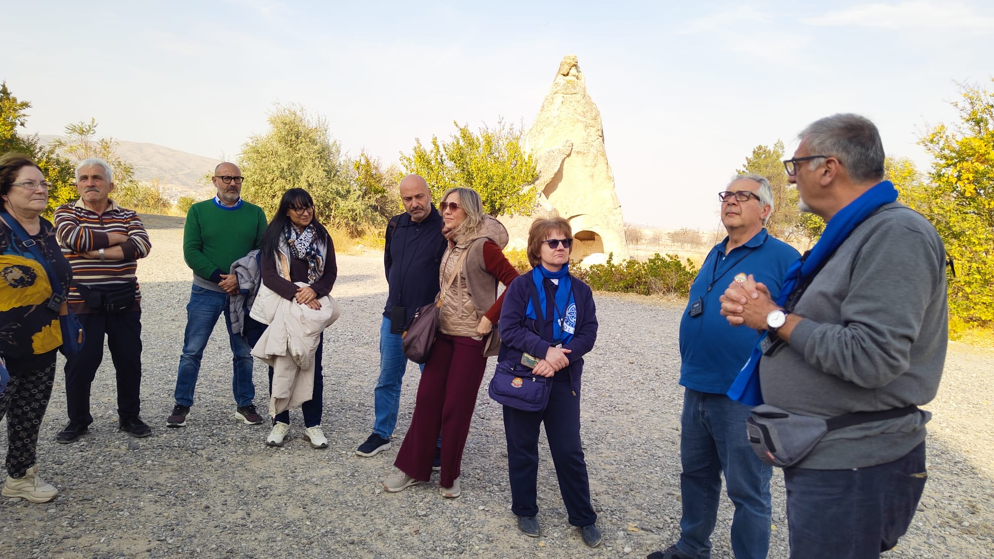 Nel pomeriggio i soci hanno proseguito la visita nel museo all’aperto della valle di Zelve, uno dei siti più affascinanti della regione. Qui, tra i celebri “camini di fata” – torri di roccia tufacea traforate da celle, abitazioni e piccole cappelle – si respira un’atmosfera sospesa tra natura e spiritualità. La maestosità del paesaggio, unita al silenzio delle antiche grotte, ha reso l’esperienza particolarmente intensa e suggestiva, offrendo ai partecipanti un momento di riflessione e di comunione spirituale. Il viaggio proseguirà nei prossimi giorni toccando altri luoghi simbolici della predicazione di San Paolo, in un itinerario che unisce fede, storia e cultura, sulle tracce di una delle figure più significative del cristianesimo.