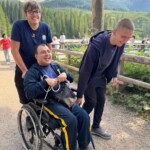 Ma ciò che ha reso quest’anno davvero speciale è stata la presenza di sei giovani: Gabriel, Manuele, Matteo, Benedetta, Flavio e Valerio. Hanno preso in mano le carrozzine come fossero tesori da custodire, affrontando con entusiasmo anche i percorsi più difficili, sostenendo con cuore ogni fatica. Le parole del nostro Presidente Pietro Corti sono state chiare: «Quando per scendere servono corde e tre persone per carrozzina, e ci sono loro, sorridenti e instancabili, capisci che stai ricevendo un dono di Dio».