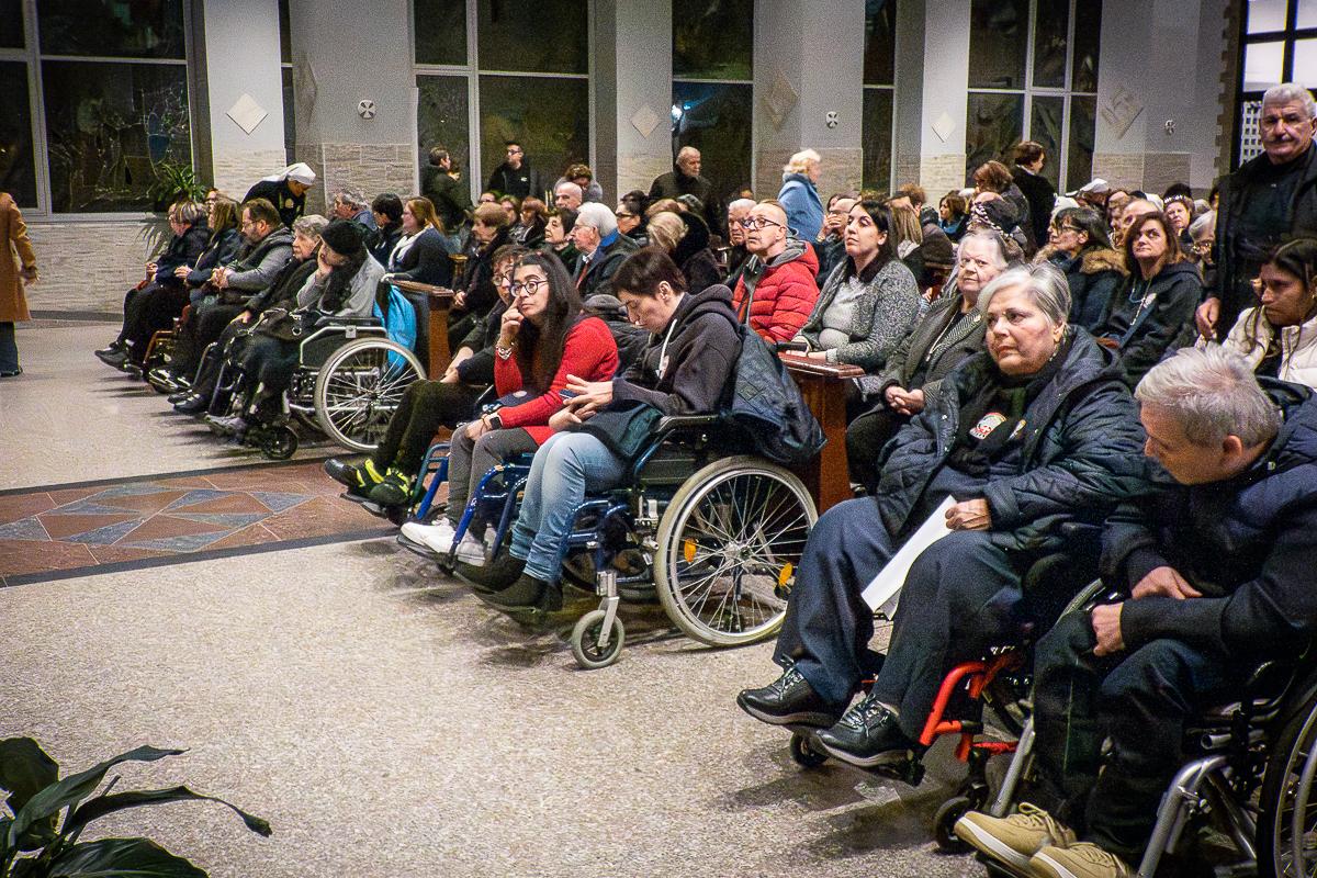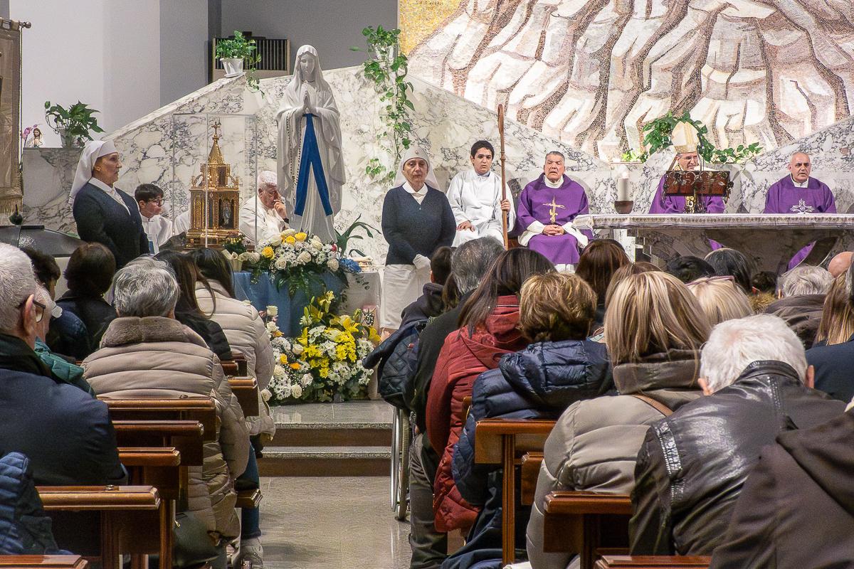 “Nella nostra fragilità – ha aggiunto monsignor Parisi -, nella terra, l’acqua è segno della presenza vitale del Signore: quella terra ha vita perché è bagnata dall’acqua di Dio. Anche Santa Bernadette si è abbeverata a questo pozzo immenso della misericordia e della tenerezza di Dio, manifestata nella purezza di Maria. E anche lei è diventata messaggera di questa parola che è parola di speranza. Pensate a tutti gli ammalati che sono qui, ma anche a tutti gli ammalati che vanno continuamente a Lourdes. Molti tornano a casa con la stessa malattia ma con una consapevolezza diversa: che il Signore dentro quella terra della nostra fragilità, della malattia, del limite, fa sgorgare quell’acqua pura che alimenta la nostra esistenza nei giorni che il Signore ancora ci regala. Perché la logica – ci è stato detto dal brano di oggi della Lettera ai Romani – è che la speranza non delude perché l’amore di Dio è stato riversato nei nostri cuori per mezzo dello Spirito Santo che c’è stato donato. La nostra vita, allora, è colma, riempita dallo Spirito del Signore che nutre la speranza e che ci fa andare avanti, magari traballanti, magari spinti da altri, perché facciamo l’esperienza di essere costantemente amati dal Signore che nel deserto non ci fa mancare l’acqua della vita”.